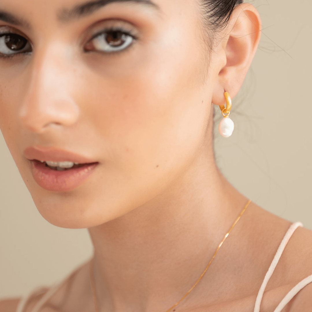 Argollas gruesas con perla de rio. Tamaño total 2,5cms. Aros plata ley hipoalergicos y libres de níquel.