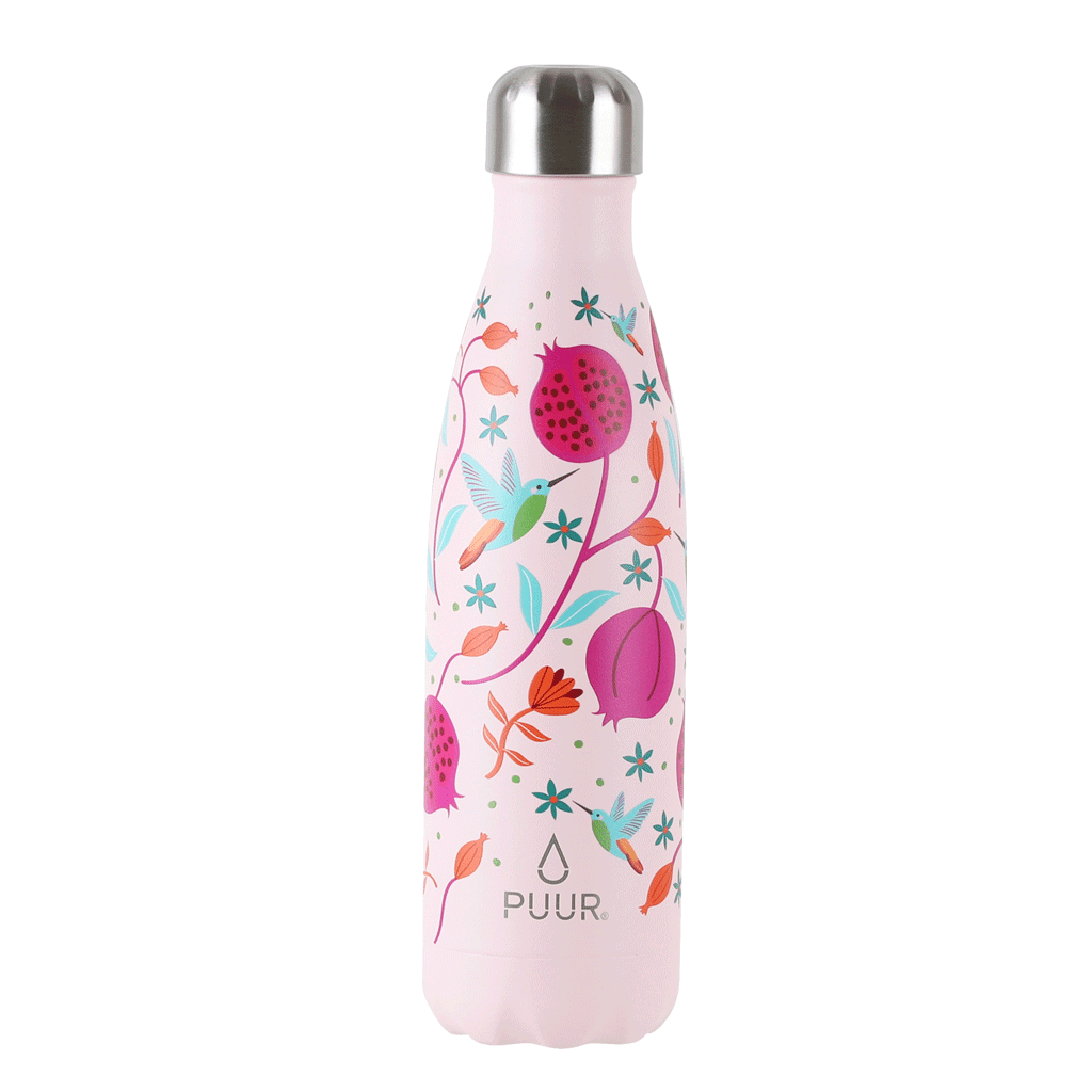 ¡Dale la bienvenida a un mundo lleno de colores con la Botella Térmica Puur Bottle ! Es la compañera perfecta de viaje o para tus días llenos de actividades. Su diseño de flores y colibríes no solo es encantador a la vista, sino que también te mantendrá hidratado (y re hidratado!) durante todo el día.