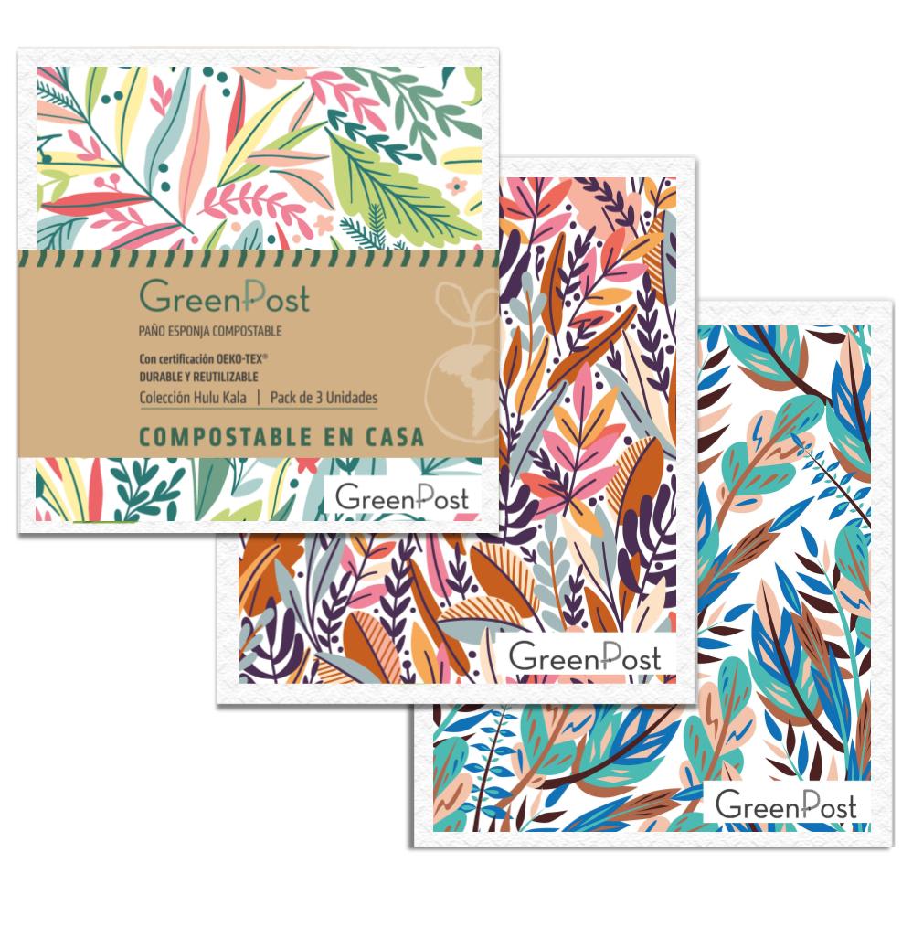 Colección de 3 paños esponjas compostables de ramas.