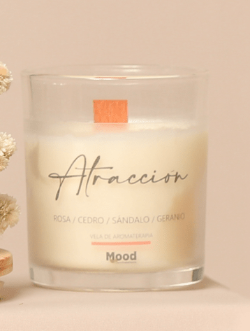 Cera de Soja, Aceite Esencial de Geranio, Rosa, Cedro y Sándalo.
